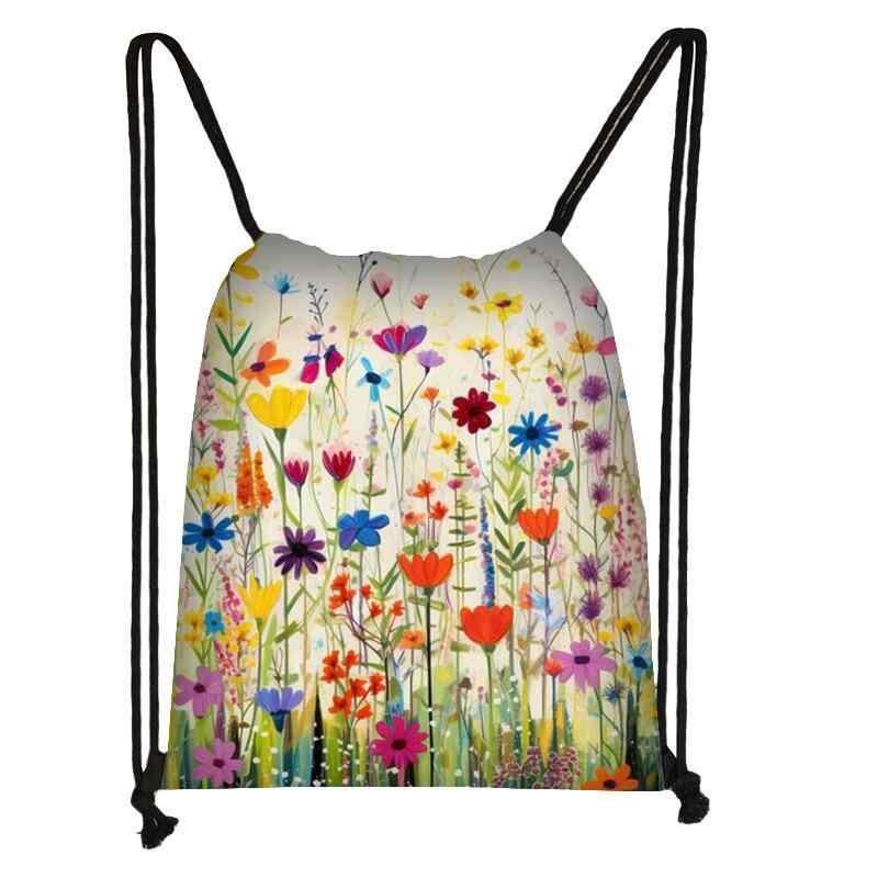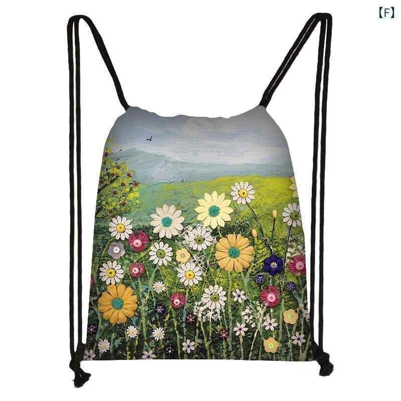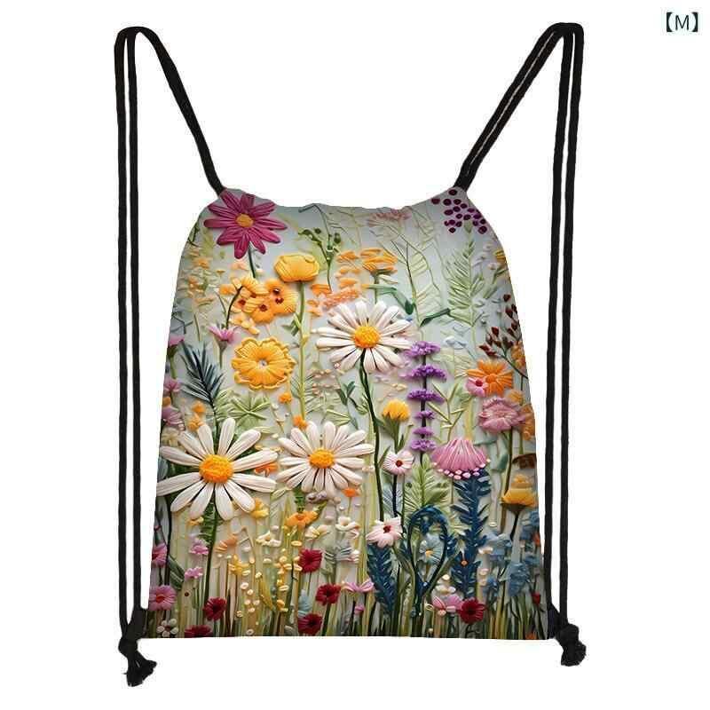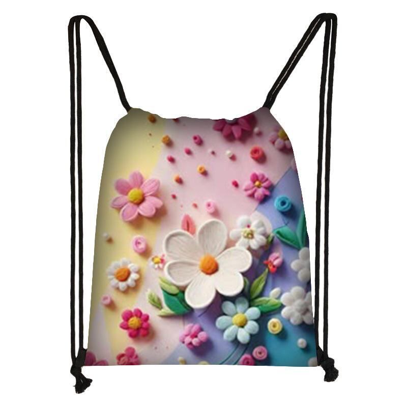 巾着バッグ オリジナルデザイン インスタ風 3Dフラワー 大容量 手提げ サブバッグ お買い物 ポリエステル製 軽量 おしゃれ ドローストリング