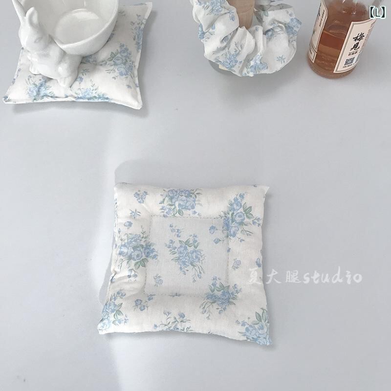 マット 韓国風 SNS映え スクエア キルティング 中綿入り 断熱 鍋敷き コースター ポットマット コットンリネン 布製 ミニ 小物置き 撮影小物 インテリア 花柄 小花柄 リボン チェック ストライプ パッチワーク ホワイト ピンク ブルー