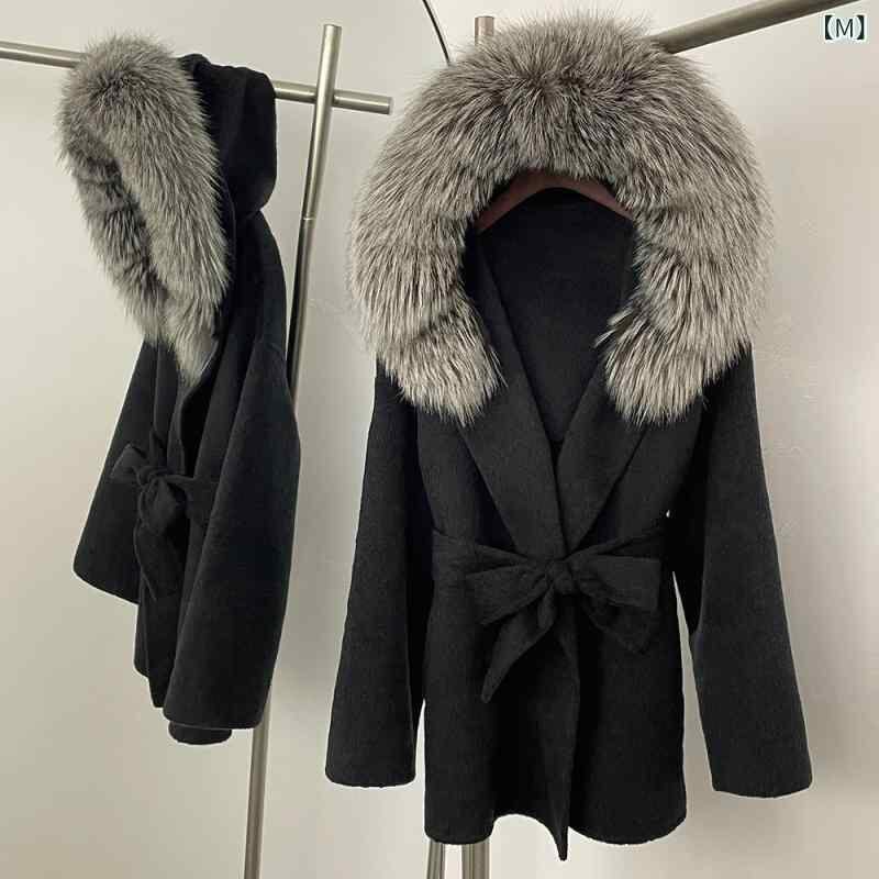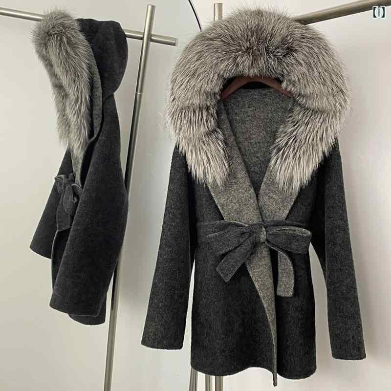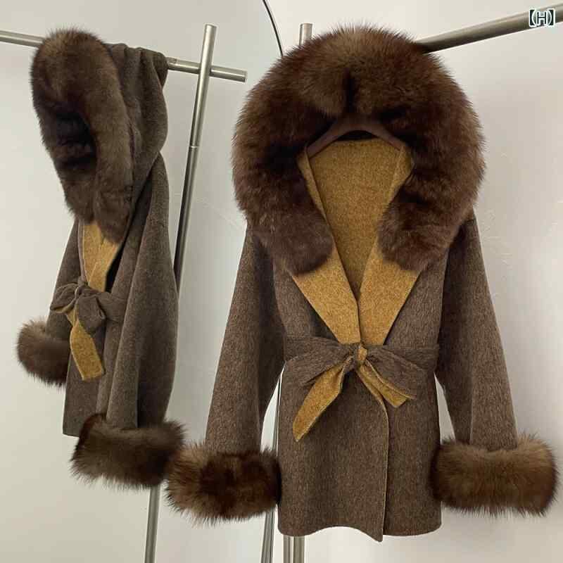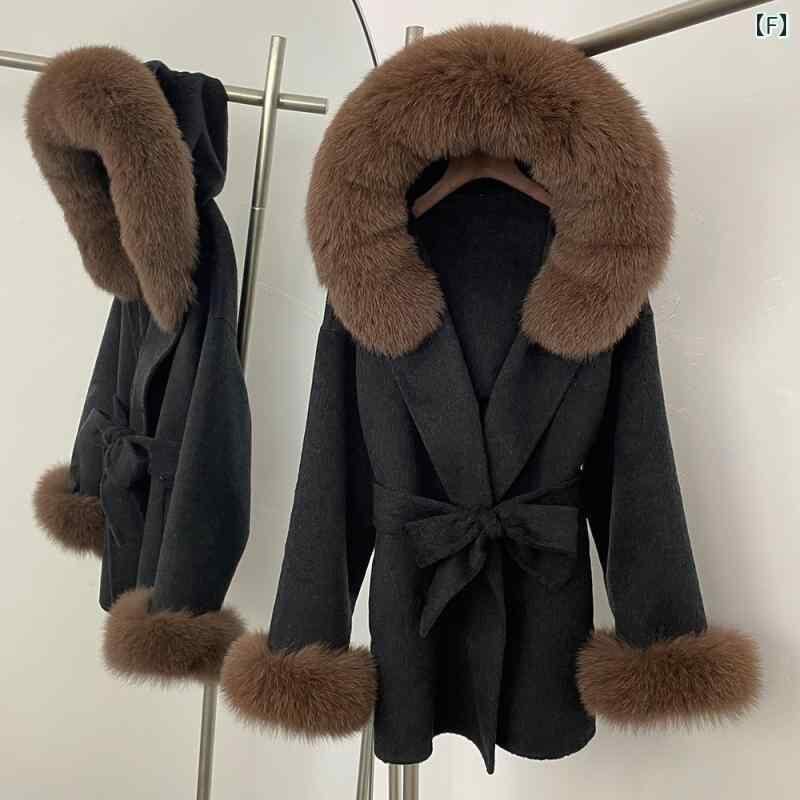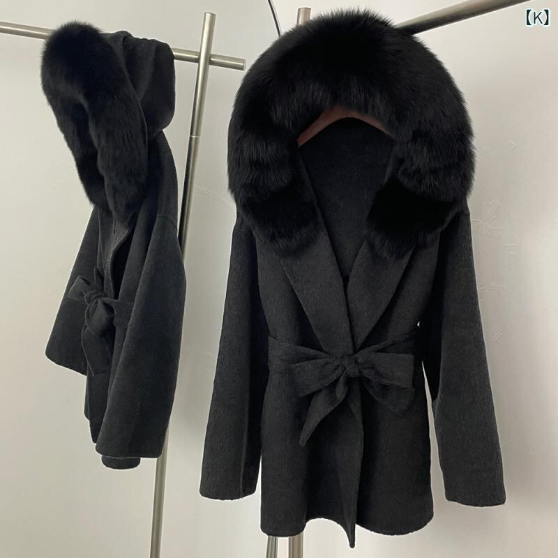 コート レディース 秋冬 フード付き フォックスファー ラクーンファー ダブルフェイス ウール アウター 高級感 ゆったり ミドル丈 通勤 キレイめ