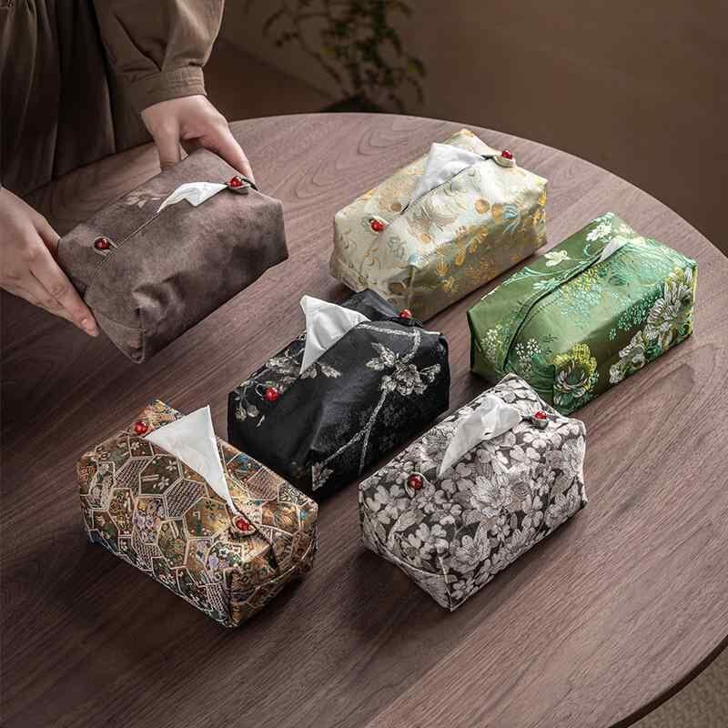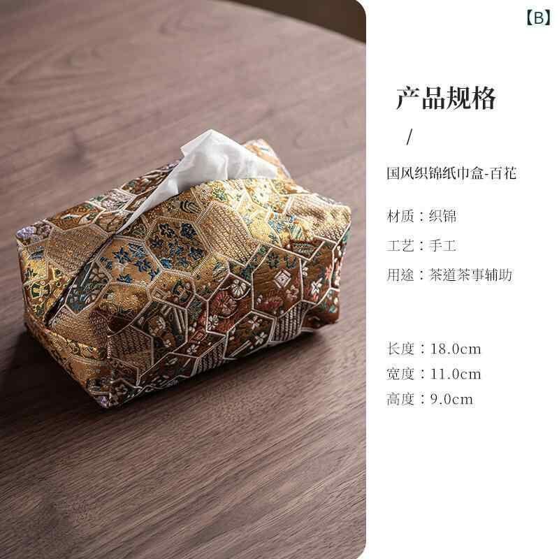 ティッシュケース 新中国風 織物 布製 禅スタイル 和モダン リビング 書斎 茶室 家庭用 卓上 収納 おしゃれ
