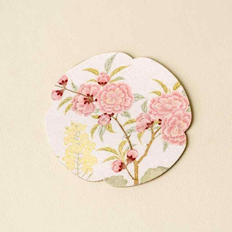 コースター 再生繊維 カイドウ 花柄 防水 両面 布製 新中華風 家庭用 断熱 茶托 茶道 茶敷き マット ボタニカル モダン