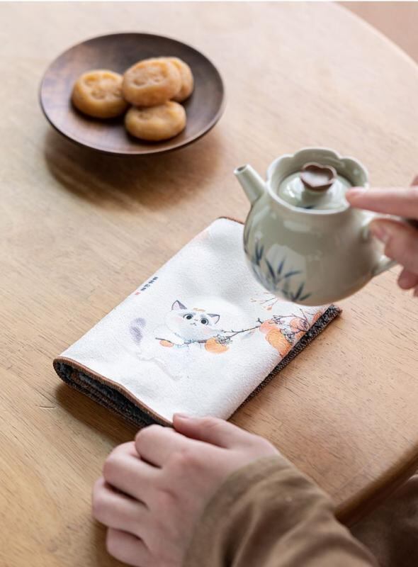 茶巾 新中式 厚手 吸水 速乾 ロングパイル コットン 禅風 絵柄 茶道具 急須お手入れ 専用 茶器拭き タオル クロス