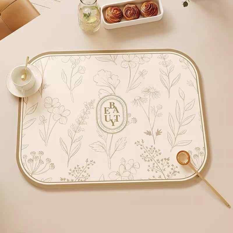 ランチョンマット プレイスマット 食卓用 レザー調 クリームカラー アメリカン 上質 エレガント 撥水 防汚 耐熱 断熱 花柄 スクエア レトロブラウン ダイニング インテリア
