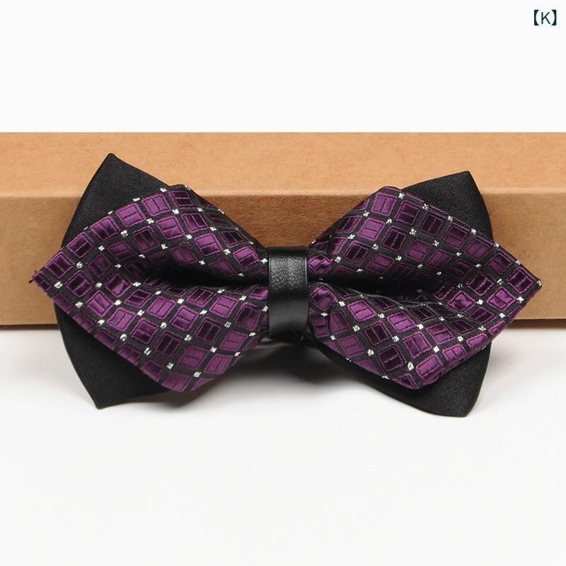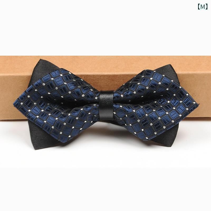 蝶ネクタイ メンズ 男性用 ポインテッド ダブルレイヤー フォーマル ビジネス ウェディング 結婚式 新郎 ブリティッシュスタイル 韓国風 上品 スーツ ワインレッド ボルドー