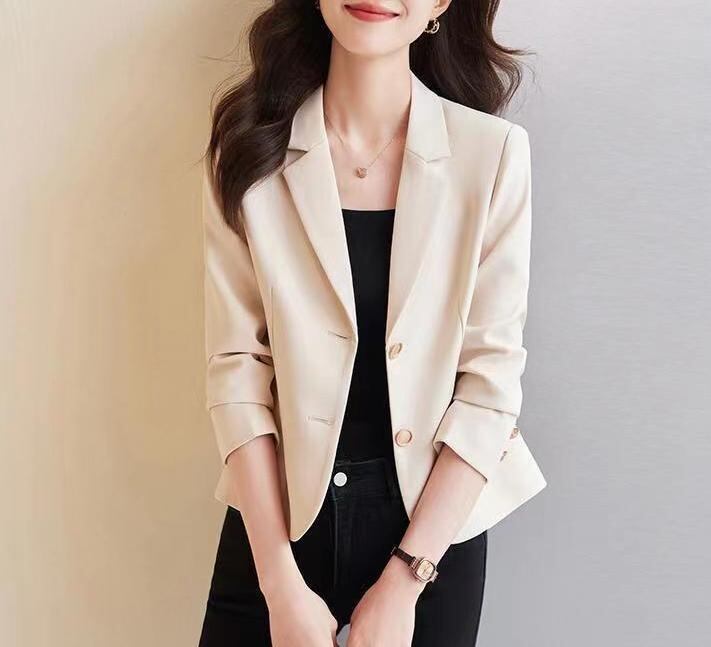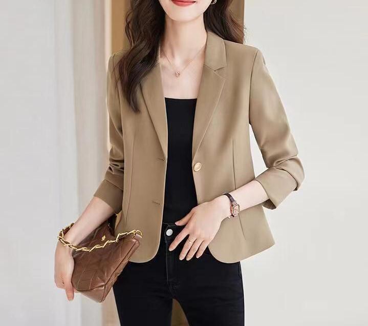 ・柄: 無地・シルエット: レギュラー・着丈: ミドル丈・ネックライン: テーラードカラー・袖丈: 長袖・袖タイプ: レギュラー・デザイン要素: ボタン・加工: ノーアイロン・生地名: ポリエステル・主な素材: ポリエステル・カラー展開: アイボリー、キャメル、ブラック・サイズ展開: S、M、L、XL・スタイルタイプ: 日韓カジュアル・前立て: シングルブレスト2つボタン・スタイル: シンプル・クロスボーダースタイル: コンフォートカジュアル・性別: レディース・カテゴリ: テーラードジャケット