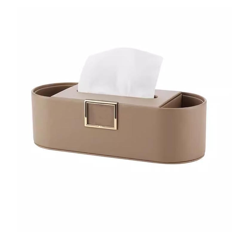 ティッシュケース リビング リモコンスタンド 多機能 卓上収納 デスク整理 小物入れ フェイクレザー 高級感 スタイリッシュ ミルクコーヒー色
