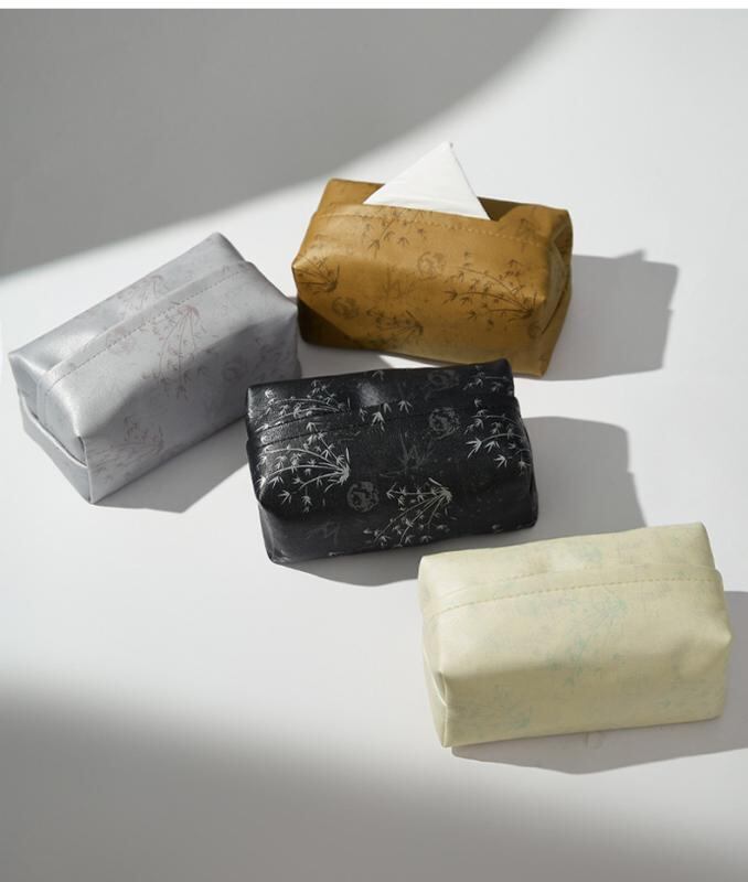 ティッシュケース 新中華風 和モダン 禅意デザイン 竹柄プリント レザー調 高級感 シンプル エレガント リビング 卓上 車内 長方形 キャメル ブラック アイボリー ペーパーホルダー