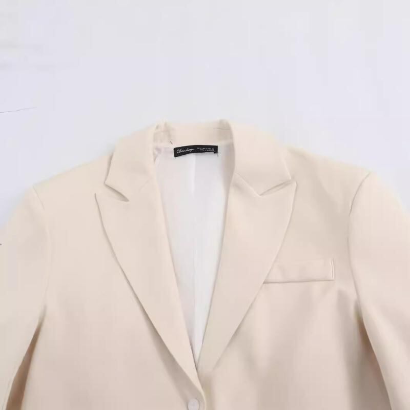 ジャケット レディース 欧米風 スタイリッシュ シンプル ゆったり ミドル丈 Vネック 長袖 シングルボタン 切り替え 混紡素材 ポリエステル オフホワイト 着回し ストリートカジュアル 通勤 普段使い 秋冬