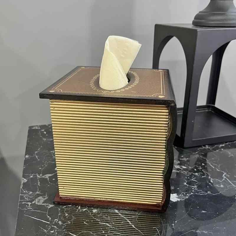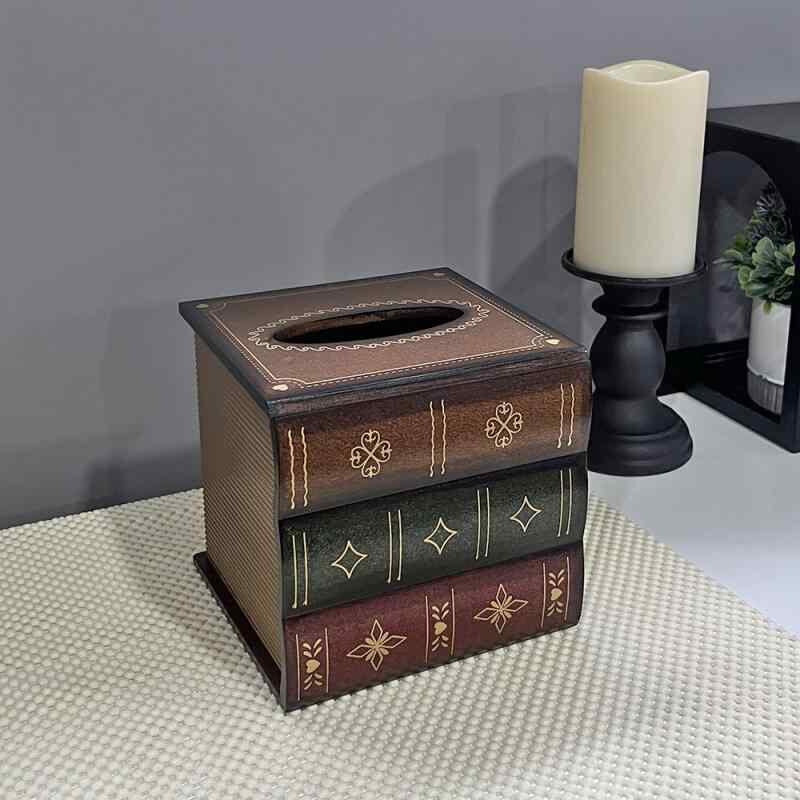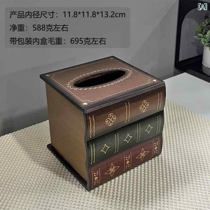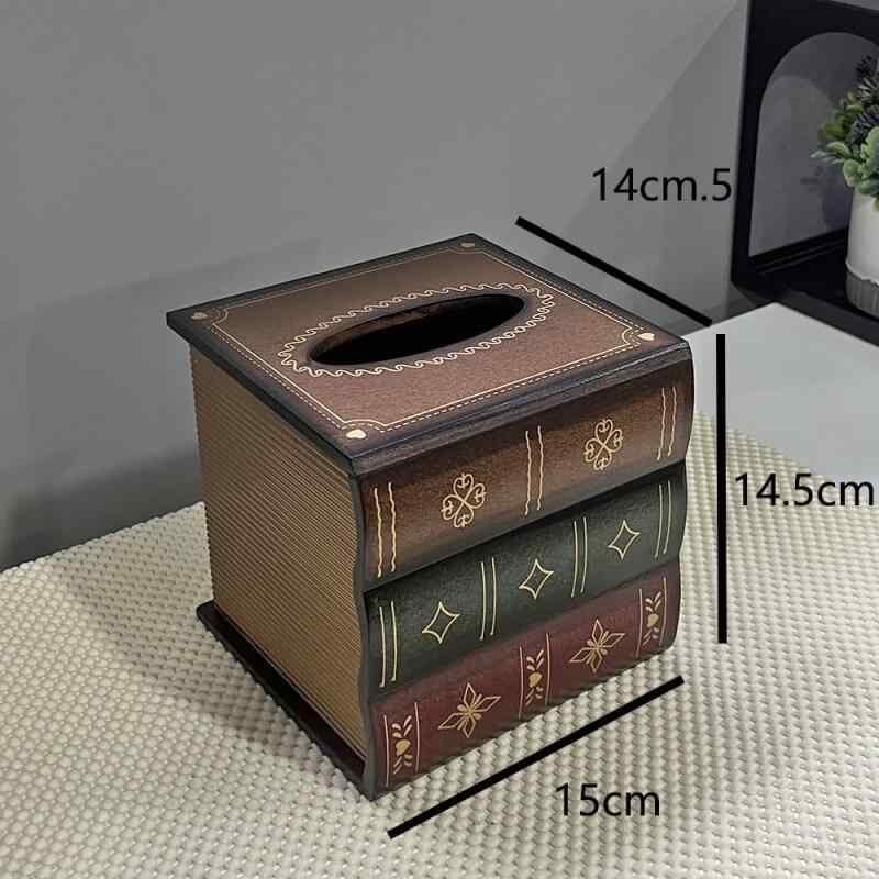 ティッシュケース レトロ ヨーロピアン アンティーク調 ブック型 フェイクブック スクエア おしゃれ インテリア雑貨 リビング ダイニング 卓上 小物入れ 置物 MDF 木目調