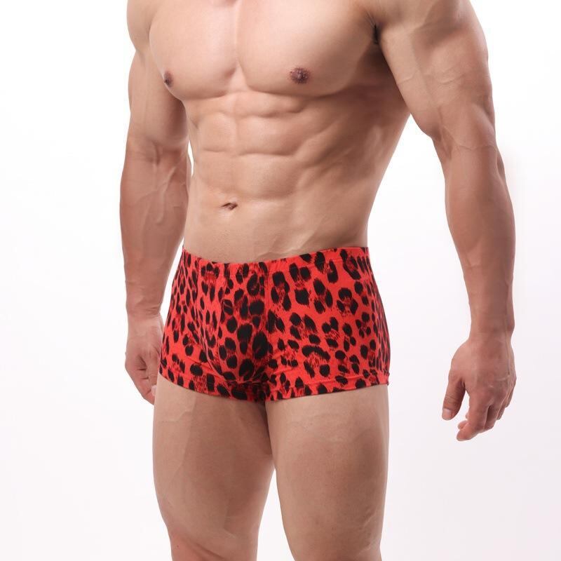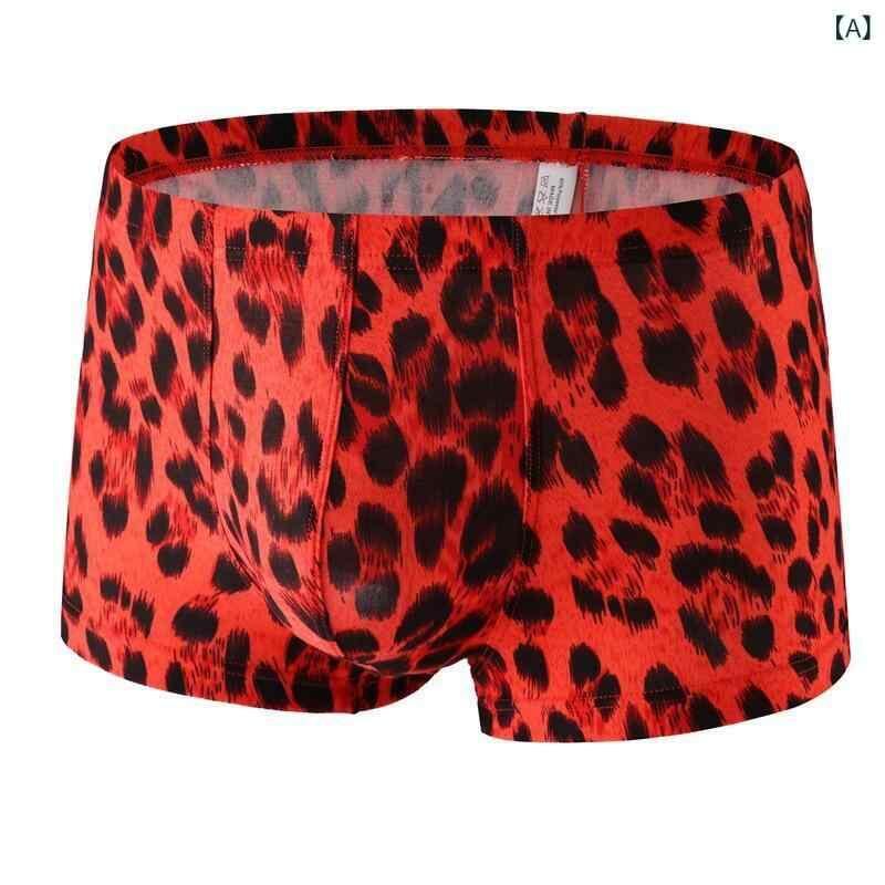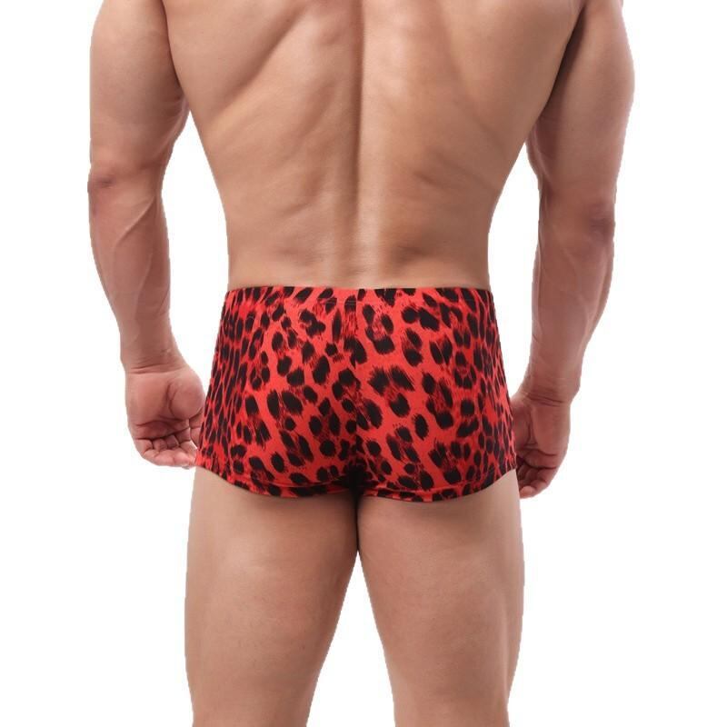 ボクサーパンツ メンズ 下着 インナー おしゃれ ヒョウ柄 レッド 通気性 伸縮性 フロント立体 ローライズ ポリエステル ニット素材 普段使い