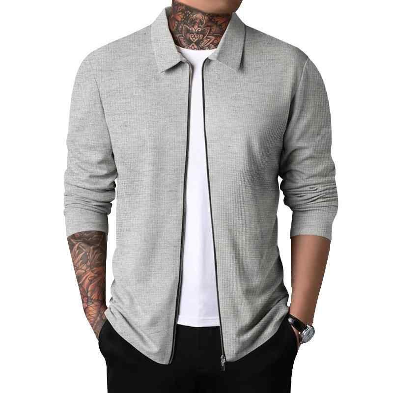 ジャケット メンズ カーディガン アウター 男性用 カジュアル 春秋 薄手 通気性 ワッフル生地 ポリエステル混紡 長袖 襟付き ジップアップ 無地 ホワイト ブラック カーキ ライトグレー