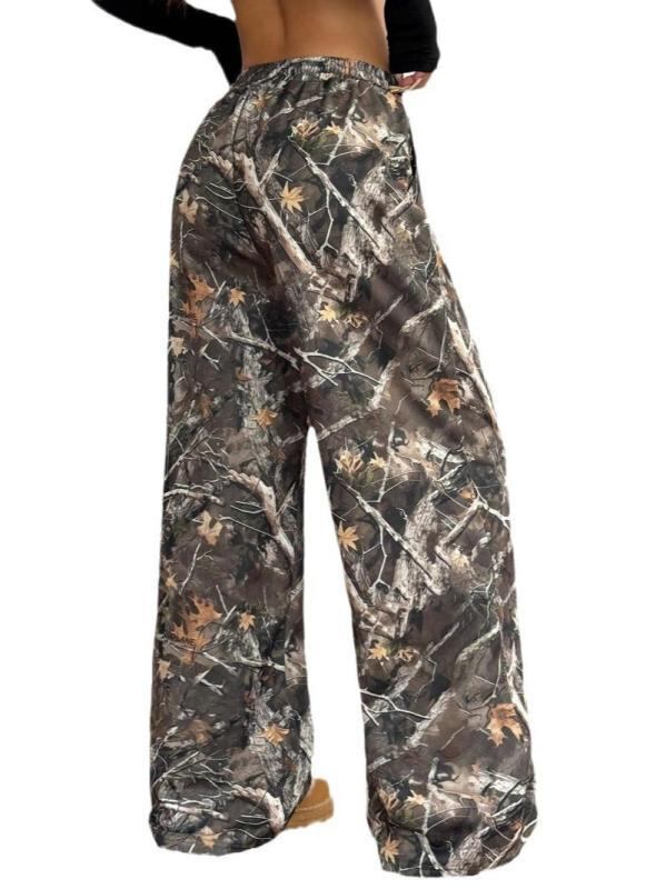 カジュアルパンツ レディース アメリカンカジュアル ファッション ストリート ヒップホップ 夏物 薄手 ポリエステル 迷彩柄 カモフラージュプリント 細見え スタイルアップ ワイド フルレングス ミッドウエスト ゆったり