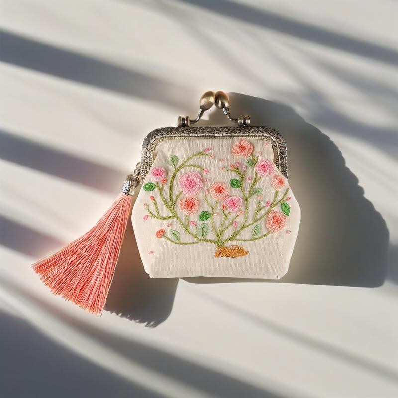 刺繍キット 初心者向け DIY 手芸 がま口ポーチ 鹿柄デザイン 古風 民族調 蘇州刺繍 リボン刺繍 ハンドメイド かわいい 大人向け プレゼント 材料キット