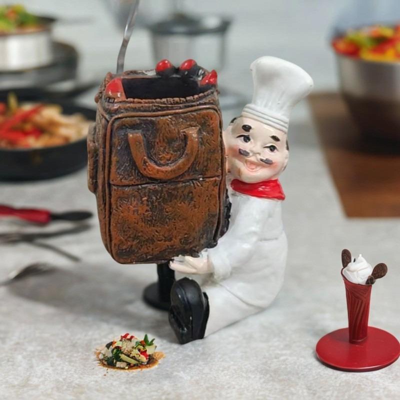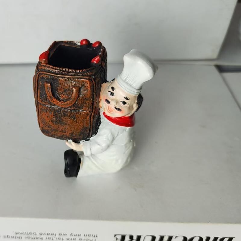 楊枝入れ シェフ コック 置物 オブジェ かわいい おしゃれ 卓上飾り インテリア 欧風 ヨーロピアン 樹脂製 ダイニング 食卓 リビング キッチン ブラウン