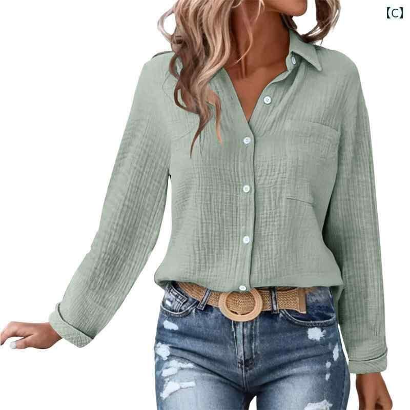 シャツ ユニセックス 長袖 無地 カジュアル ベーシック リネンブレンド コットン トップス ゆったり ルーズフィット レギュラーカラー 普段使い デイリーユース 着回し