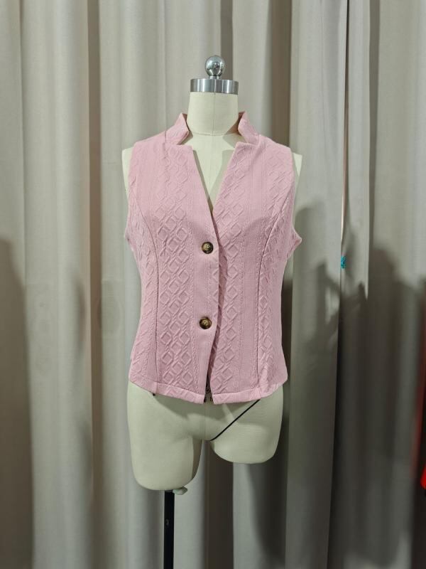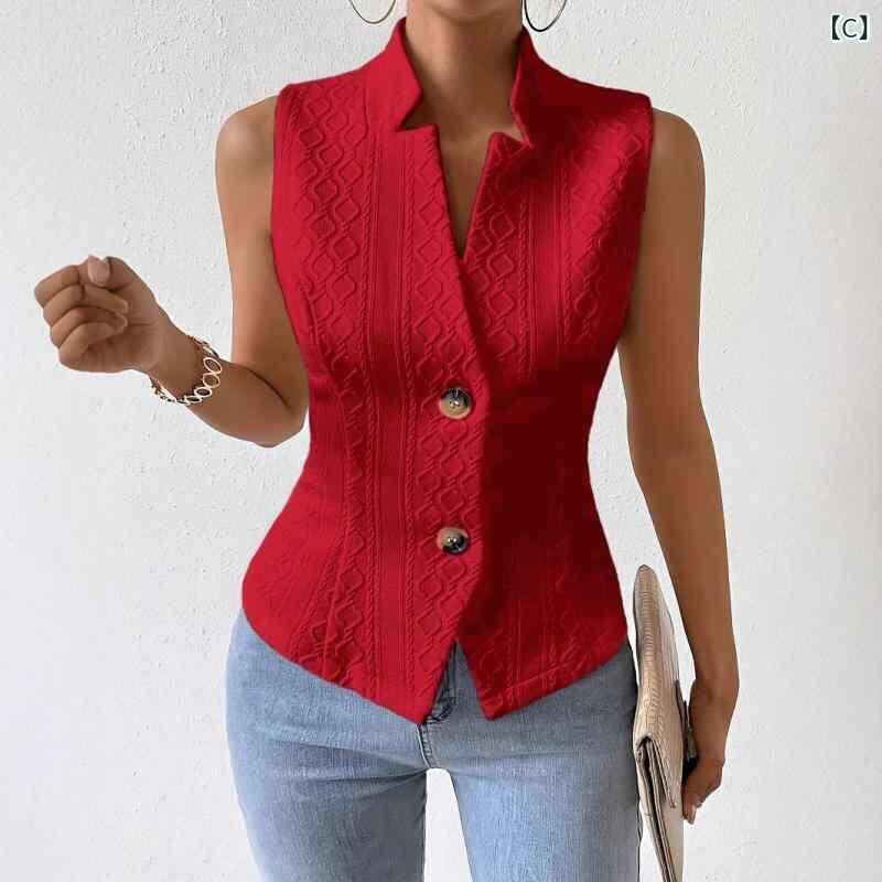 ベスト レディース Vネック ノースリーブ 前開き ボタン ジレ トップス 羽織り 通勤 オフィス カジュアル きれいめ ミドル丈 ポリエステル ブラック 春夏