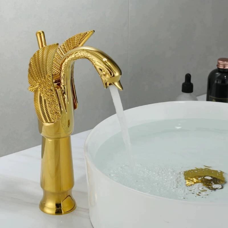 蛇口 真鍮製 スワン型デザイン 混合水栓 シングルレバー 冷温水対応 洗面ボウル カウンター上 台座式 浴室 洗面所用 電気メッキ加工 ゴールド シルバー ローズゴールド アンティーク調 アメリカンスタイル セラミックバルブ