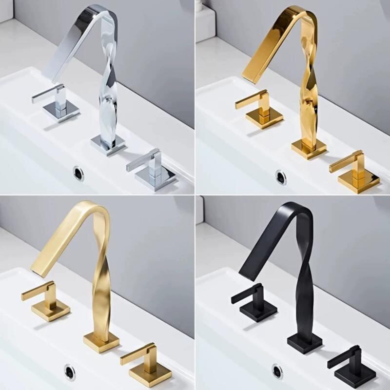 水栓 真鍮製 おしゃれ ユニーク ツイスト 温冷 シングルレバー 混合水栓 浴室 洗面所 洗面台 洗面ボウル用 家庭用 シンプル モダン チタンゴールド ブラッシュドゴールド 電気メッキ加工 ブラック