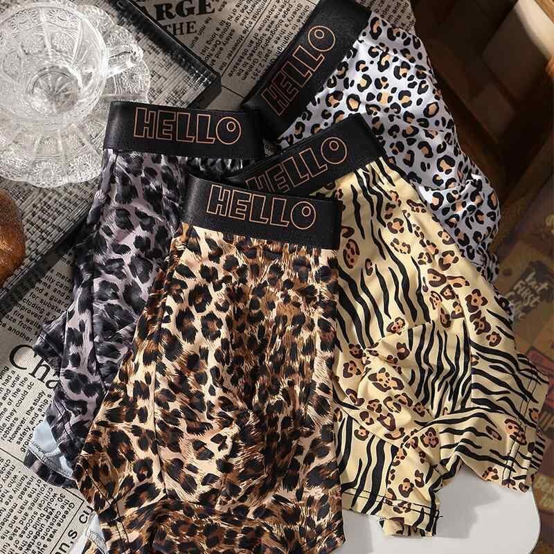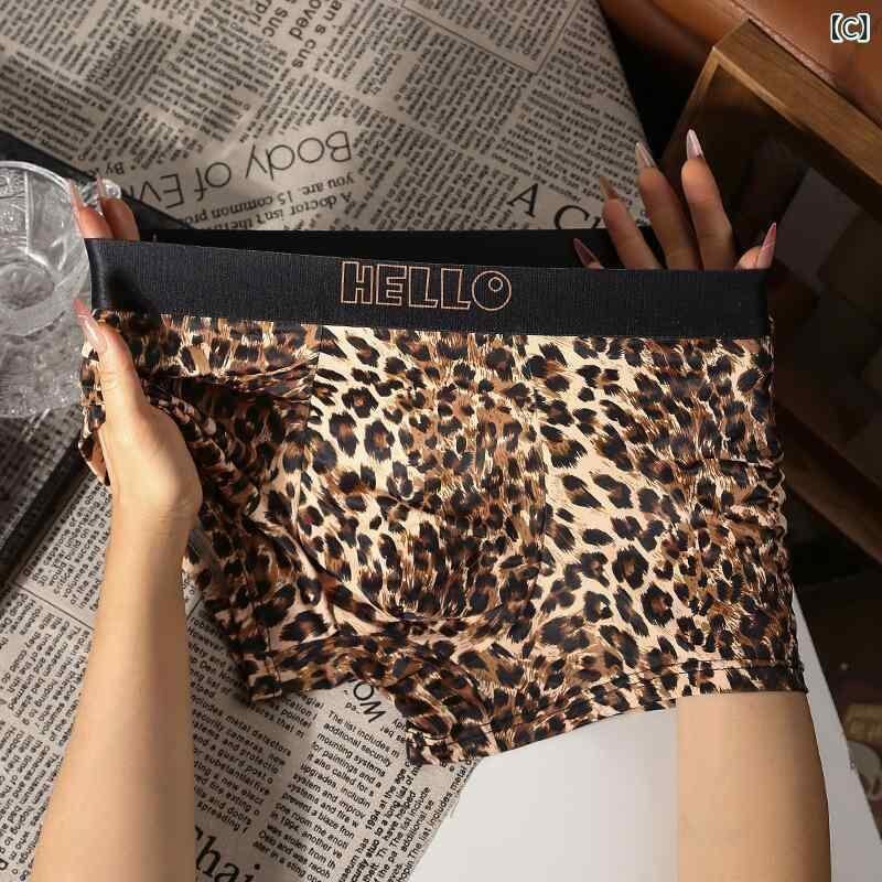 ボクサーパンツ 男性用 個性的 ワイルド ヒョウ柄 接触冷感素材 通気性抜群 肌に優しい ミドルウエスト ナイロン スパンデックス 伸縮性快適 夏 アンダーウェア 普段使い ルームウェア