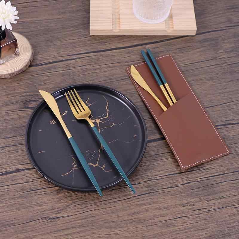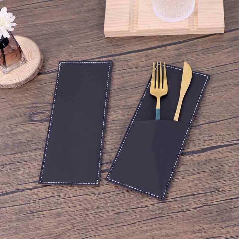 カトラリーケース ポータブル 人工皮革製 洋食器 収納ポーチ ナイフ フォーク スプーン ブラウン ブラック スタイリッシュ コンパクト レストラン カフェ 持ち運び アウトドア用