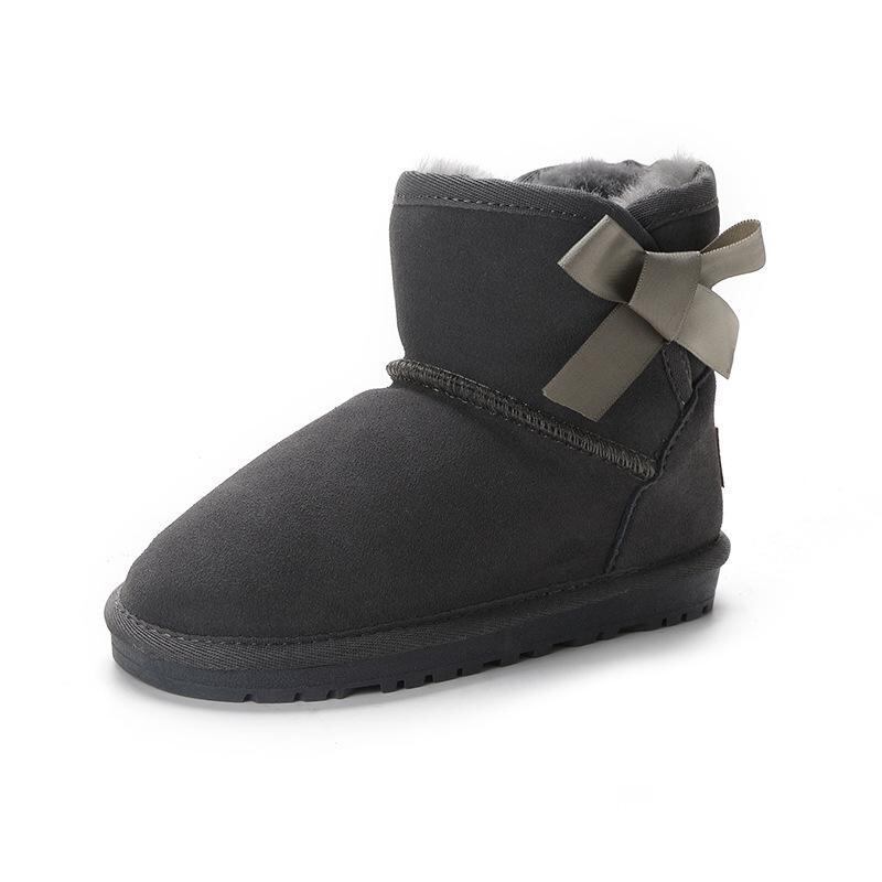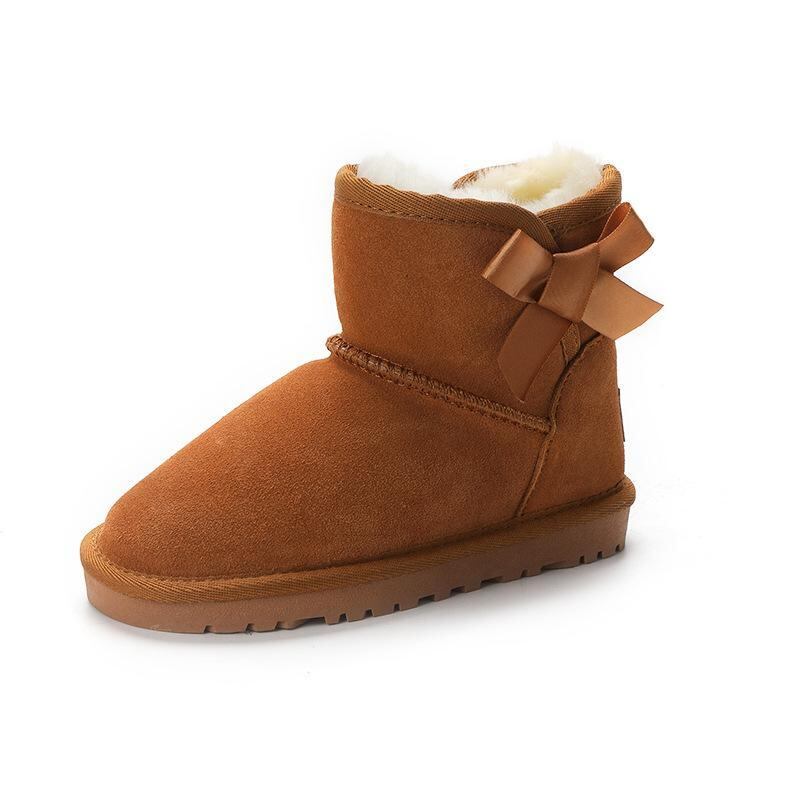 スノーブーツ 子供 女の子 キッズ プリンセス 幼児 小学生 本革 牛革 羊毛 韓国風 秋冬 リボン ショート丈 暖かい 防寒 栗色 グレー ピンク かわいい カジュアル