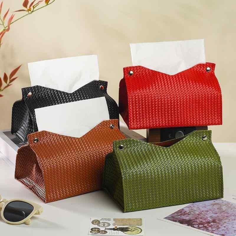 ティッシュケース 北欧風 おしゃれ シンプル PUレザー製 合皮 車載 家庭用 卓上 リビング 防水 多機能 ブラック レッド グリーン ブラウン