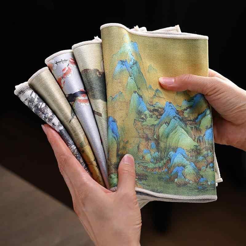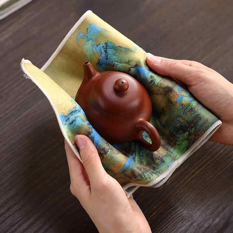 茶巾 クロス 拭き布 ふきん 綿 コットン スエード調 フェイクスエード 吸水速乾 ティーテーブル用 養壺用 茶器手入れ ハンドメイド 中国茶器 功夫茶具 茶道具 茶道用品 中国伝統柄
