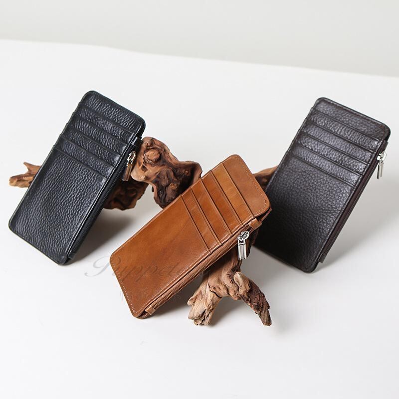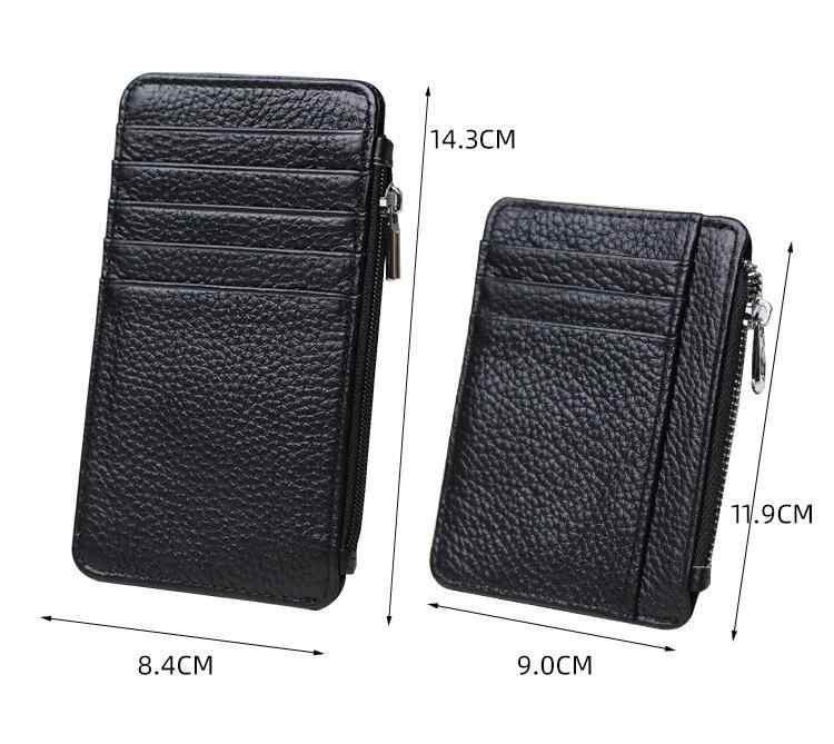 カードケース ユニセックス 男女兼用 極薄 超薄型 ミニ コンパクト 本革 牛革 レザー シンプル 横型 IDカード クレジットカード 10枚カード収納 ファスナー付き小銭入れ コインケース 普段使い 携帯便利 防水 軽量 耐摩耗性 ブラック ダークブラ