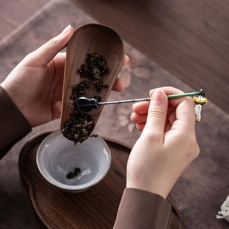 茶杓 独創的 芭蕉型 合金製 ハンドメイド パール飾り 長柄 茶葉用 計量用 茶匙 抹茶 煎茶 茶道具 和モダン おしゃれ シンプル ティータイム 小物