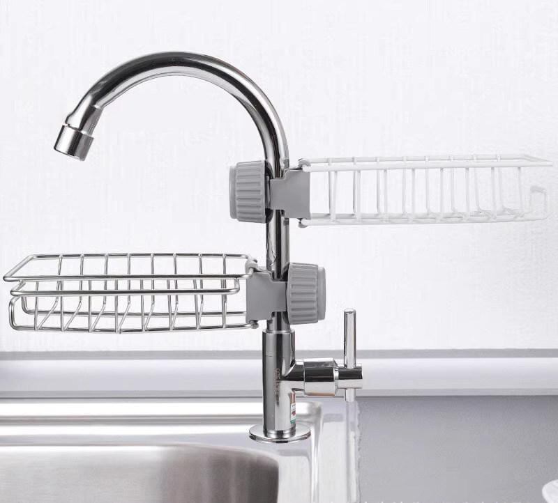 水切りラック キッチン シンク周り 蛇口横 スポンジホルダー 収納棚 ステンレス製 穴あけ不要 工具不要 台所用品 整理整頓 多機能 省スペース コンパクト