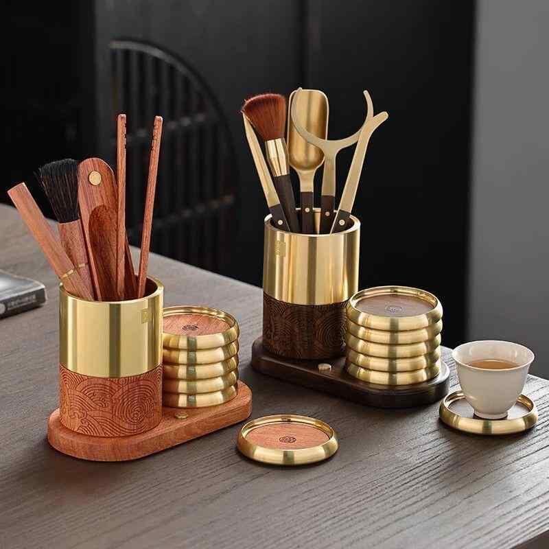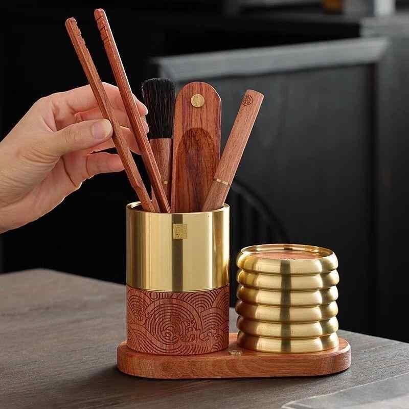 茶道具 功夫茶器 茶道 茶器フルセット 六君子 茶淹れ道具 アクセサリー 黒檀 花梨 銅製 喫茶用品 茶卓 茶台 置物 インテリア飾り