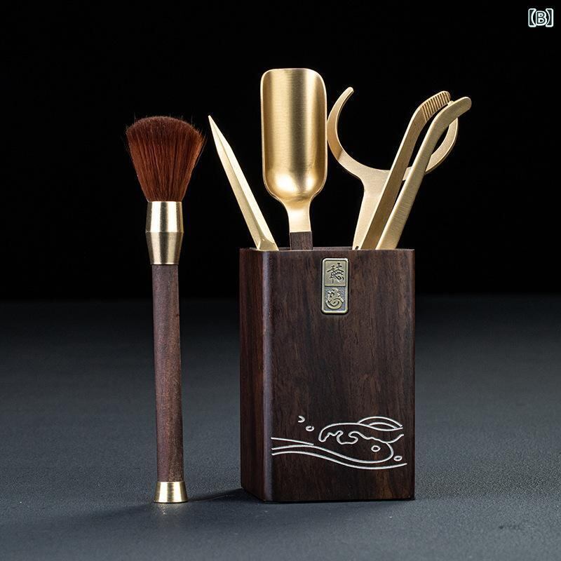 茶道具 純銅 黒檀木製 功夫茶 中国茶道 六君子セット 茶杓 養壺筆 茶刀 本格茶器 お点前 茶席小物 美しい工芸品 伝統的デザイン