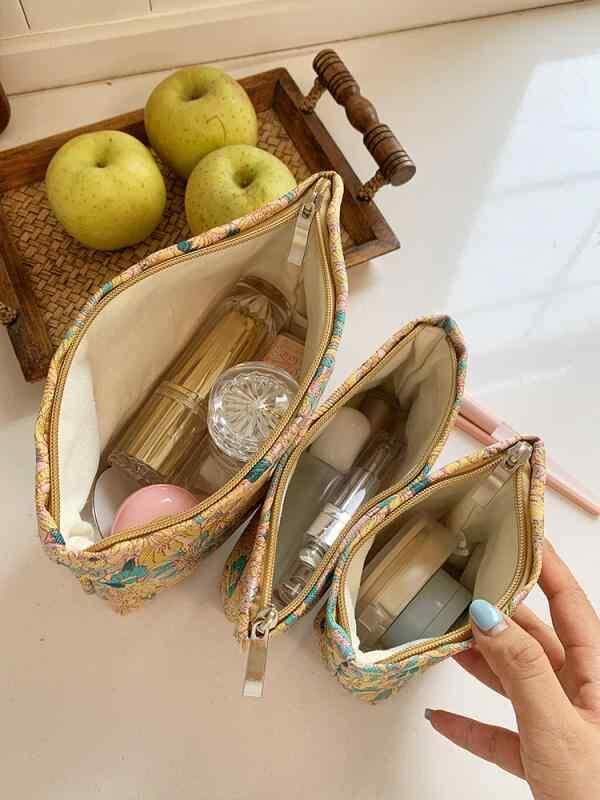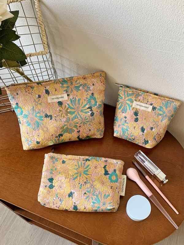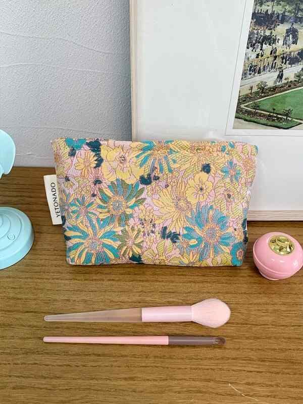 ポーチ レディース 花柄 刺繍 コスメ収納 持ち運び スクエア型 旅行 洗面用具入れ 普段使い デイリーユース フェミニン かわいい ポリエステル キャンバス生地