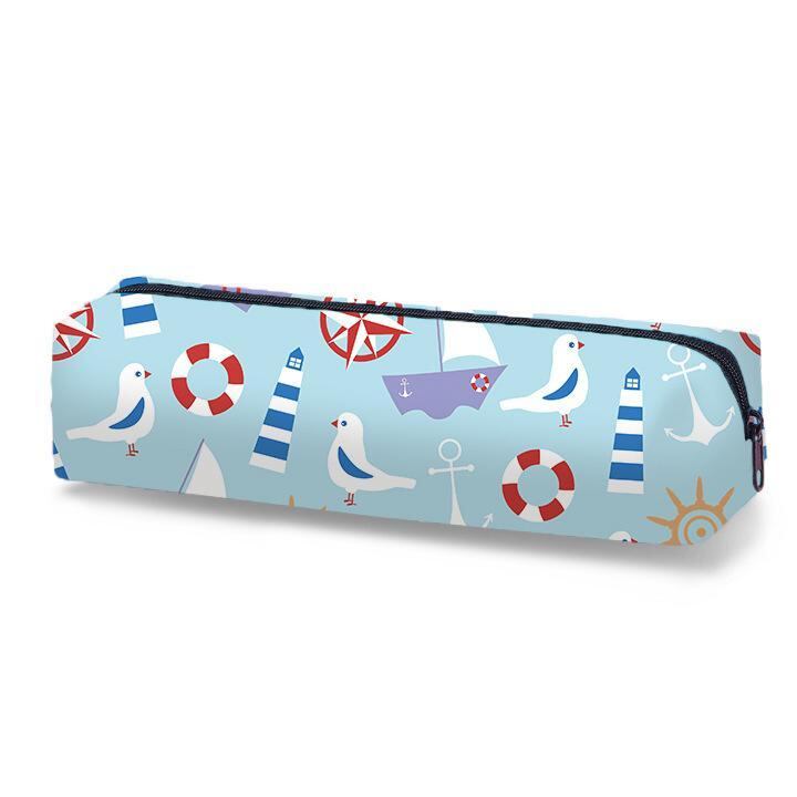 筆箱 男女兼用 海洋動物総柄 ポリエステル 軽量 ダブルファスナー 二層式 大容量 収納ケース シンプルデザイン 学校 オフィス 普段使い 旅行 学生 大人 文房具入れ カラフル 多機能ペンポーチ