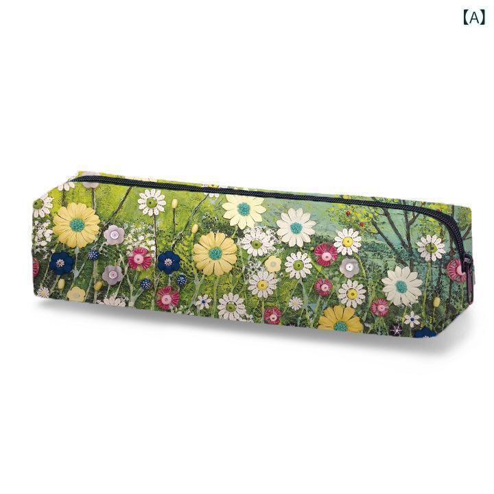 ペンケース 男女兼用 花柄 立体 総柄 ポリエステル 携帯用 シンプル 大容量 かわいい おしゃれ 学校 オフィス 普段使い 筆箱