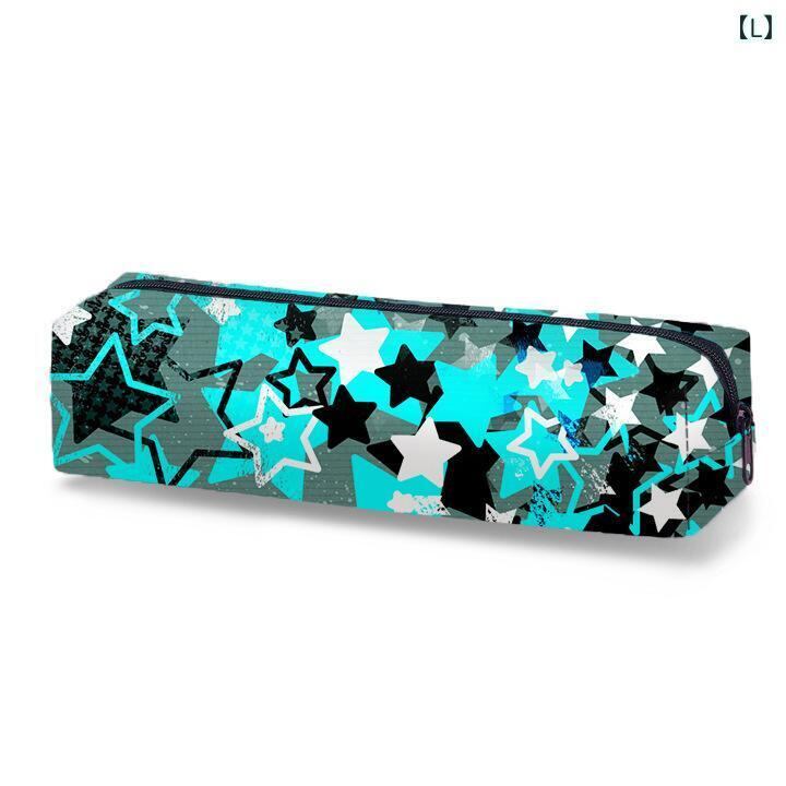 ペンケース ユニセックス 男女兼用 筆箱 ステーショナリーポーチ 2層式 大容量 携帯用 コンパクト キャラクター 星柄 総柄 シンプル ポリエステル 布製