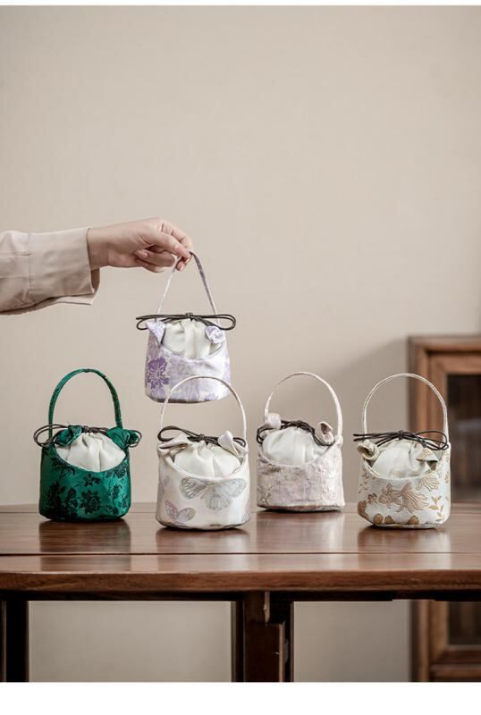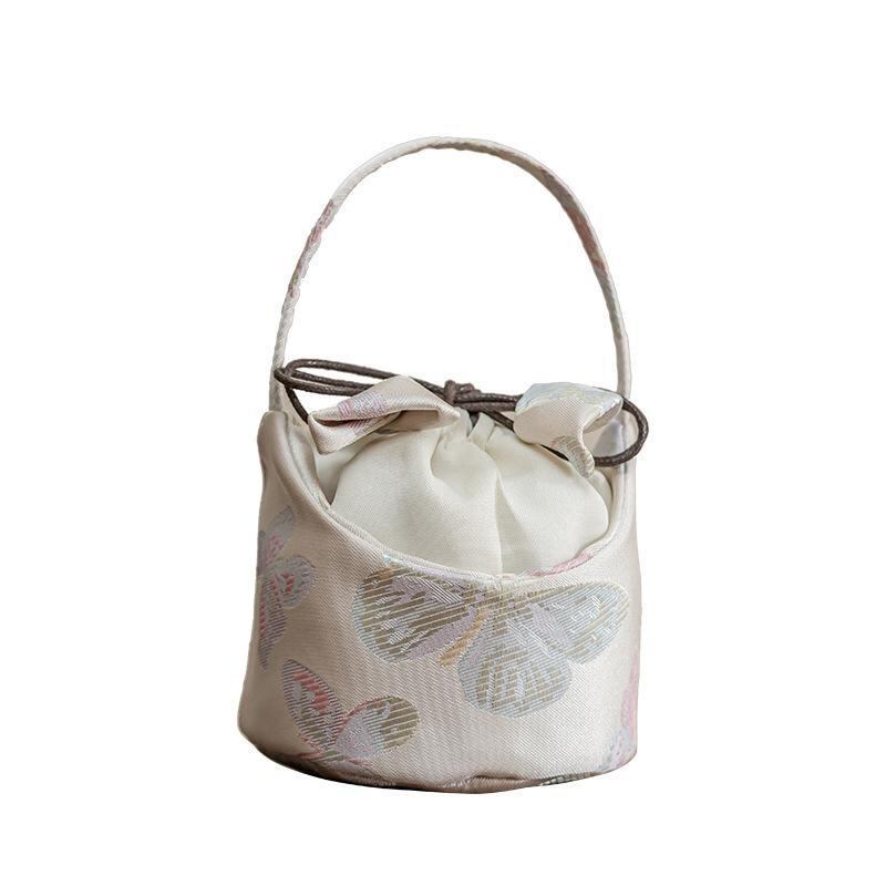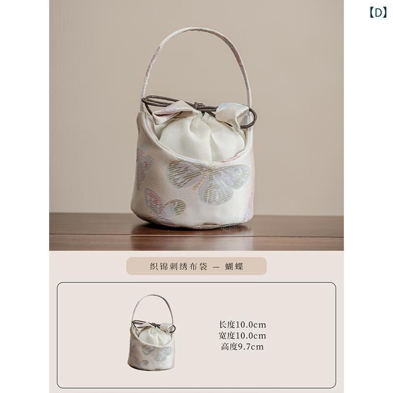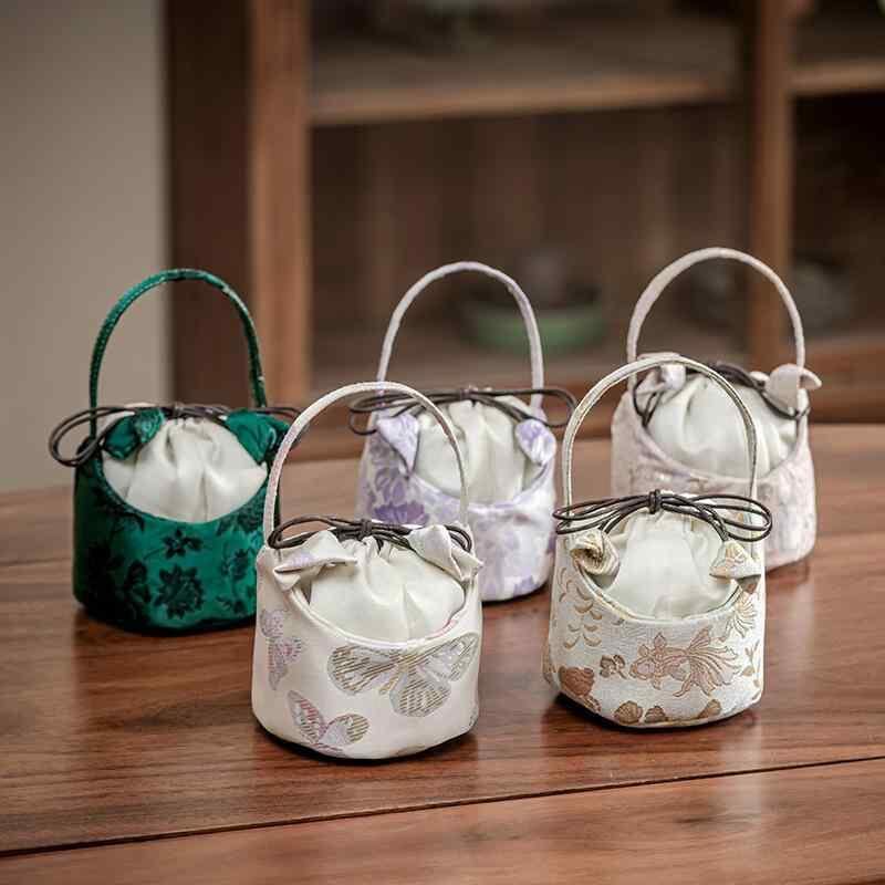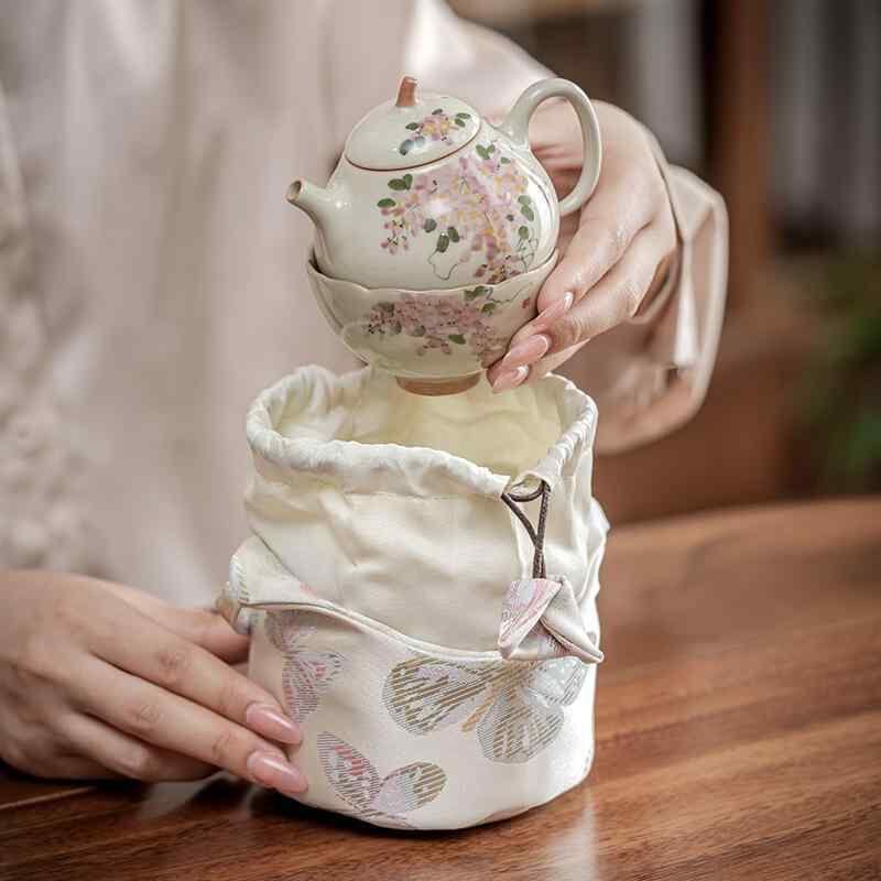 茶器収納袋 錦織り 厚手 クッション性 布製 ポータブル 携帯用 トラベル 旅行 アウトドア オフィス マイカップ ティーセット クイックカップ 持ち運び ファブリック おしゃれ ポーチ ケース