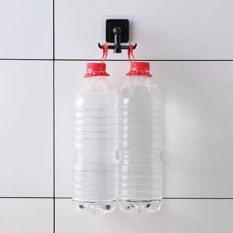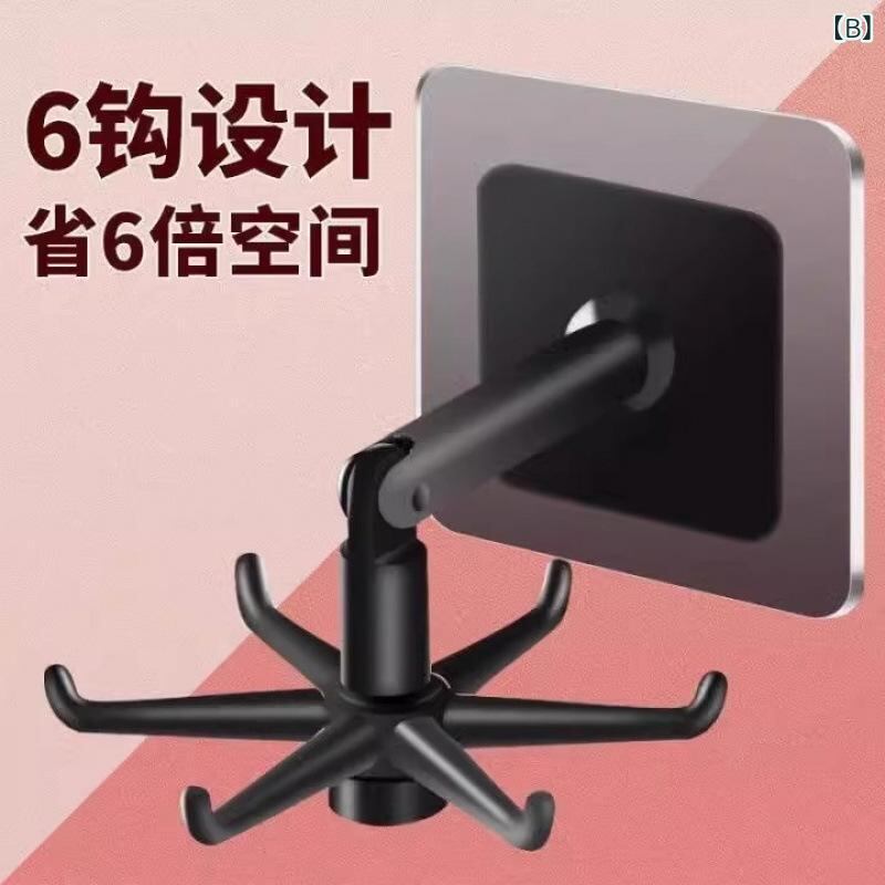 フック キッチン 吊り下げ収納 回転式 穴あけ不要 粘着 壁掛け 六角形 多連 プラスチック製 調理器具 ホルダー 寮 居室 兼用 省スペース ホワイト ブラック