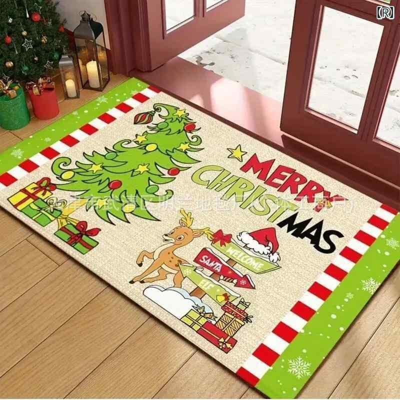玄関マット クリスマス 泥落とし 汚れにくい 滑り止め カット可能 珪藻土 クリスタルベルベット フロアマット 赤 かわいい イラスト デザイン ドアマット 洗える ウォッシャブル おしゃれ エントランス 屋内 足拭き