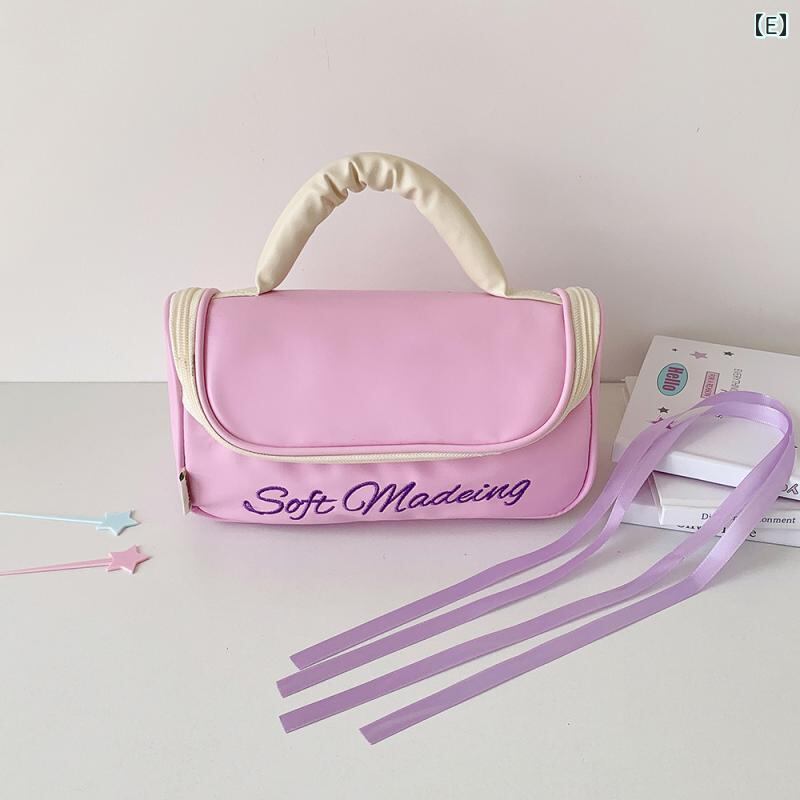 ポーチ 学生 男女兼用 シンプル おしゃれ 高見え 大容量 手提げ PUレザー ペンケース 筆箱 トラベル コスメ 洗面 収納ポーチ 携帯 持ち運び シルバー ピンク グリーン ベージュ パープル