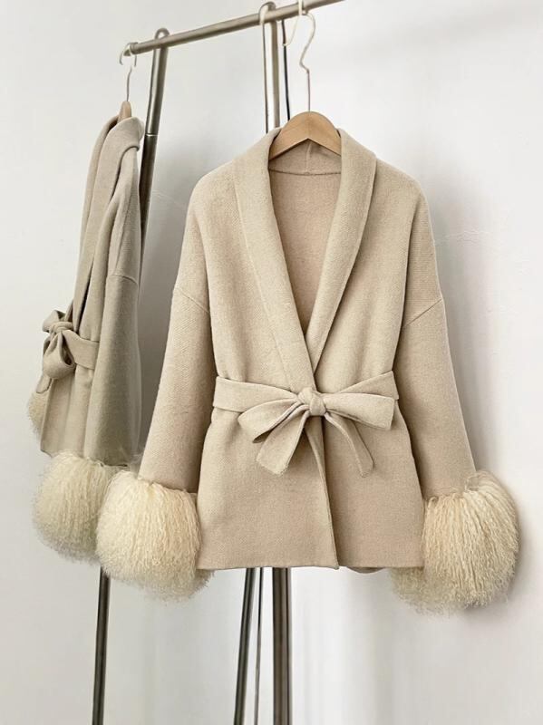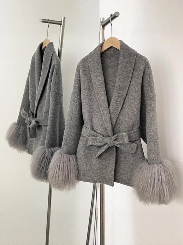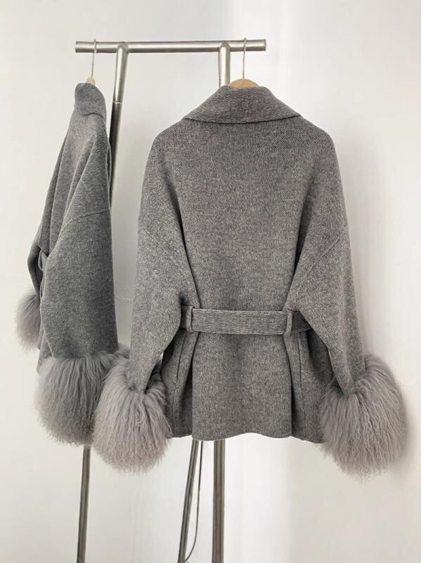 コート レディース 高級感 ダブルフェイス カシミヤ ウール 小柄女性用 上品 エレガント ゆったり ミドル丈 ベルト付き 手縫い 無地 秋冬