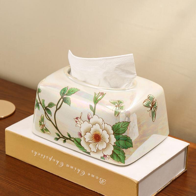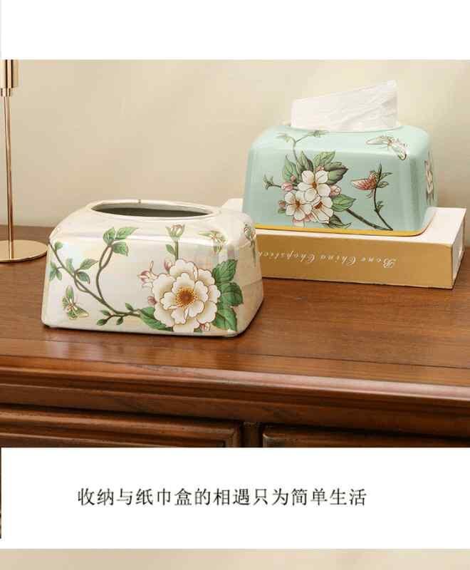 ティッシュケース 陶器製 アメリカン 北欧 ヨーロピアン 新中式 高級感 上品 エレガント リビング 洗面所用 インテリア オブジェ 多機能 小物入れ 収納ボックス おしゃれ