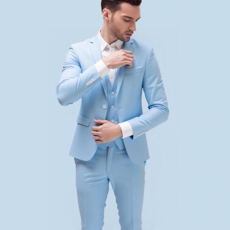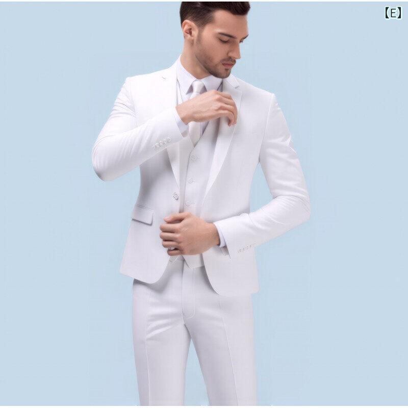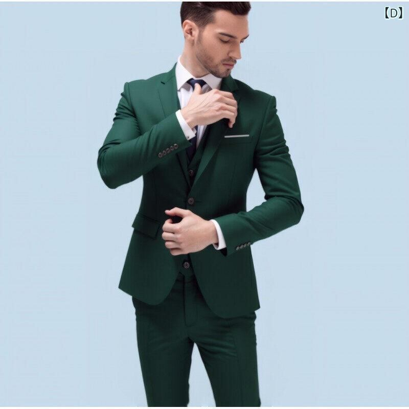 スーツ メンズ 若者 スリムフィット 細身 新郎 結婚式 披露宴 フォーマル 礼服 カジュアル ビジネス スリーピース ベスト付き 大きいサイズ ビッグサイズ センターベント ポリエステル混紡 春夏