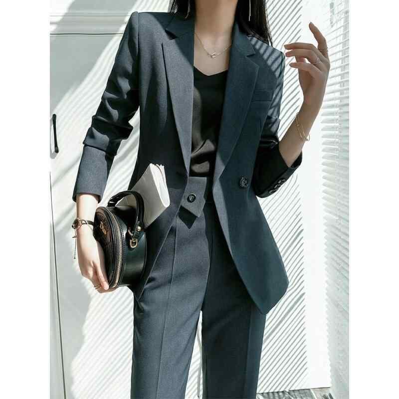 セットアップ レディース 春夏秋冬 スリムフィット 細身 高級感 エレガント 上品 オフィス ビジネス 通勤 事務服 スーツ ポリエステル ブルーグレー ブラック