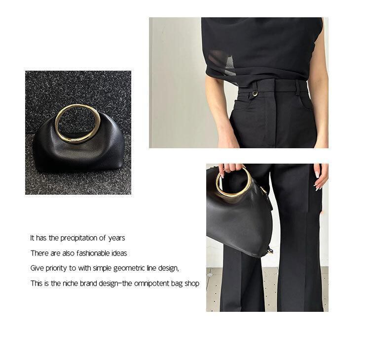 ハンドバッグ レディース 個性的デザイン フレンチエレガンス 上品 メタルリング クラウドバッグ イブニング パーティー 結婚式 お呼ばれ 高級感 ミニ コンパクト PUレザー ラウンド型 ソフト マグネット開閉 スマホ収納 ブラック ホワイト 普段使い