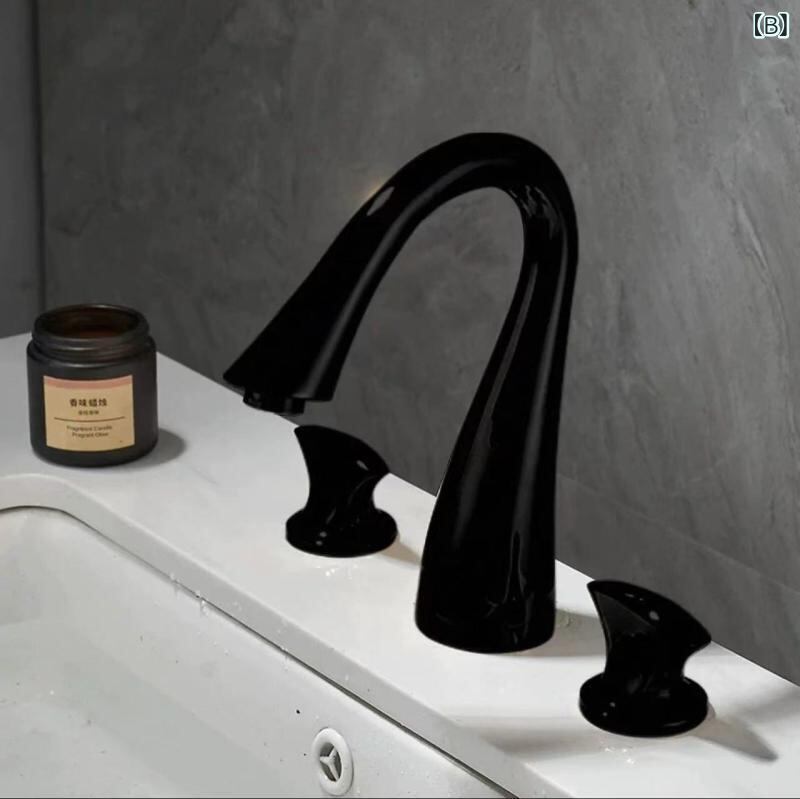 水栓 北欧スタイル 高級感 ゴールド 真鍮製 温冷対応 3ホール セパレート式 3点セット 洗面台 浴室用 置き型 蛇口 電気メッキ加工 セラミックバルブ