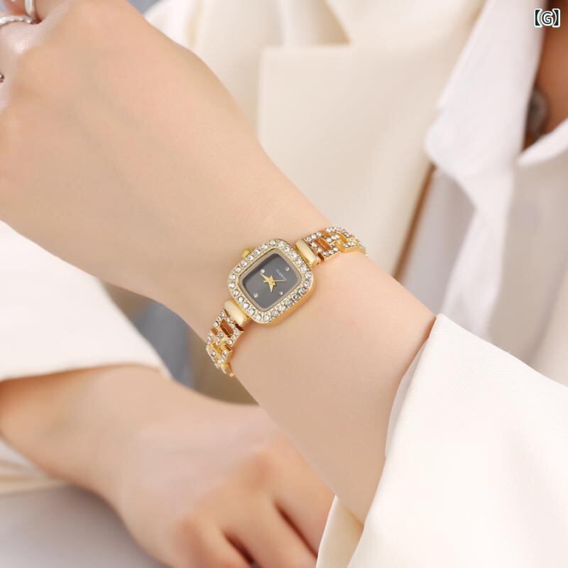 腕時計 レディース スクエア型 ジルコニア ブレスレットウォッチ サイズ調整可能 スライド式 合金 クォーツ 普段使い ファッション小物 アナログ