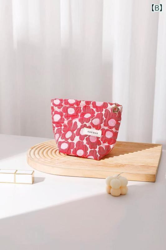 ポーチ レディース キャンバス ジャカード 花柄 ピンク クラッチ コスメ収納 小物入れ コインケース 高級感 上品 携帯用 フェミニン デイリーユース