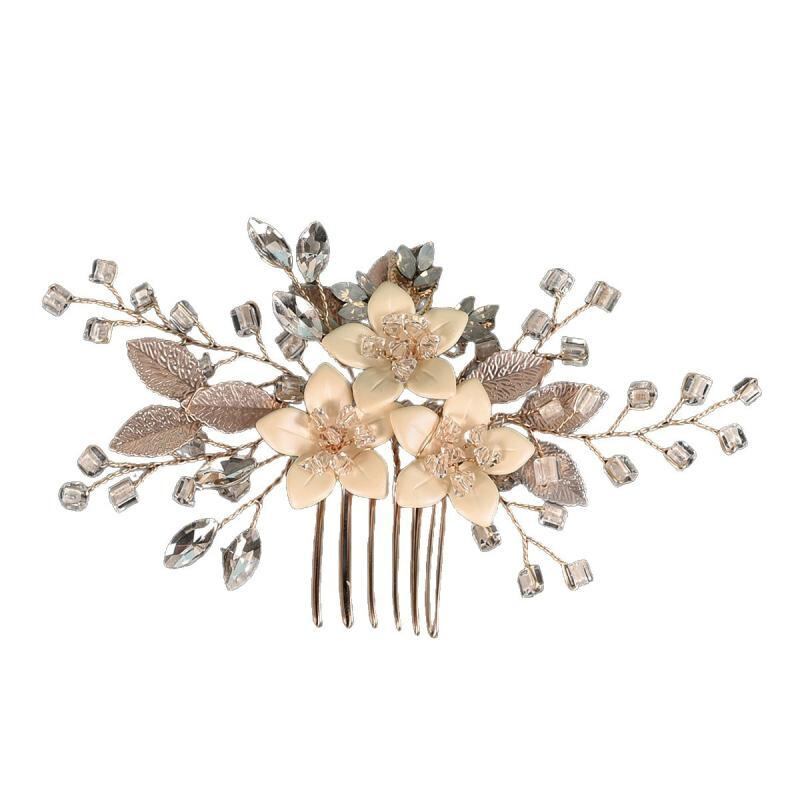 髪飾り ウェディング ブライダル 花嫁 ヘッドドレス ヘアアクセサリー サイドコーム クリスタル ストーン ハンドメイド 合金製 シンプル フラワーモチーフ ゴールド シルバー 電気メッキ加工