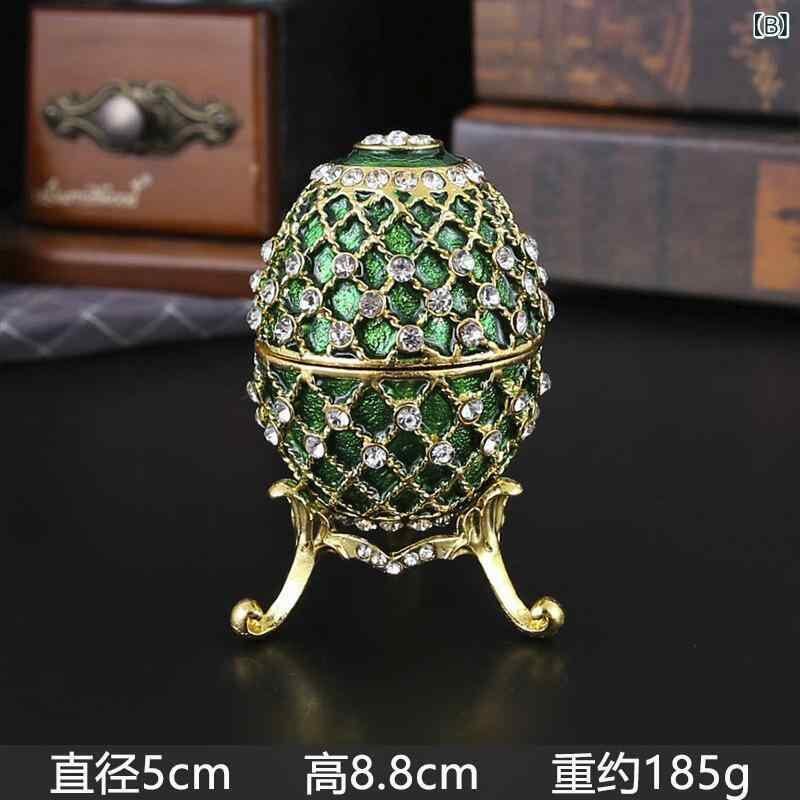 ジュエリーボックス オブジェ イースターエッグ 卵型 ギフト 欧風 エナメル彩絵 ラインストーン装飾 金属製 精巧 高級感 インテリア 小物入れ